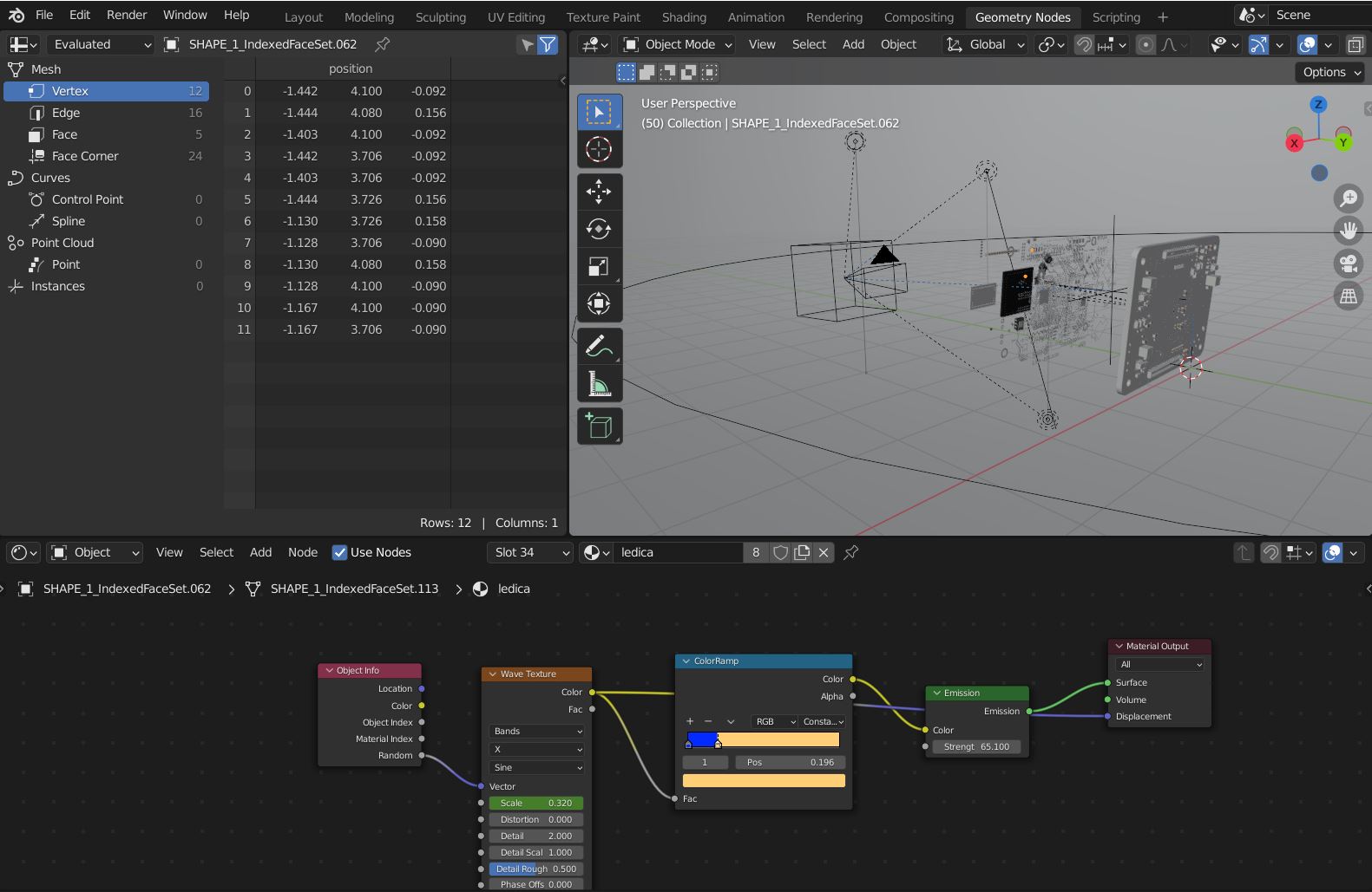 This time I decided to try random LED blinking and made it through Shader nodes in the Shader Editor.