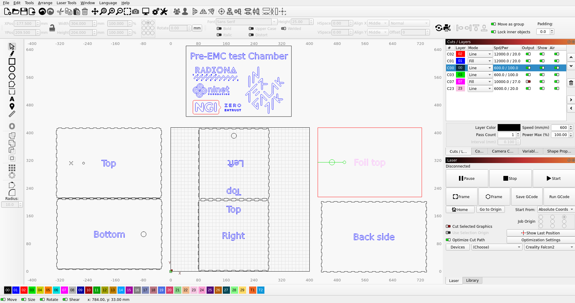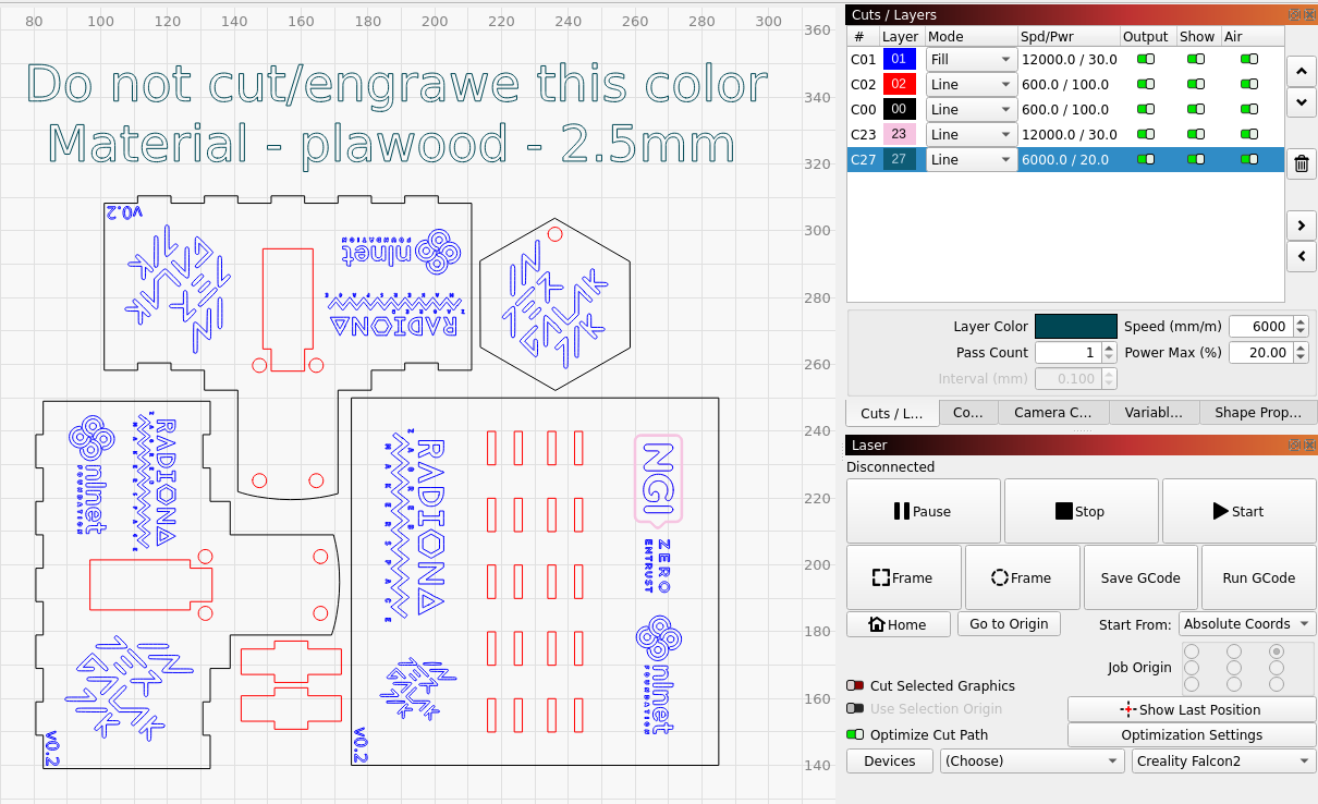 Then I exported the OpenSCAD Model to DXF - and imported it into the laser cutting tool LightBurn