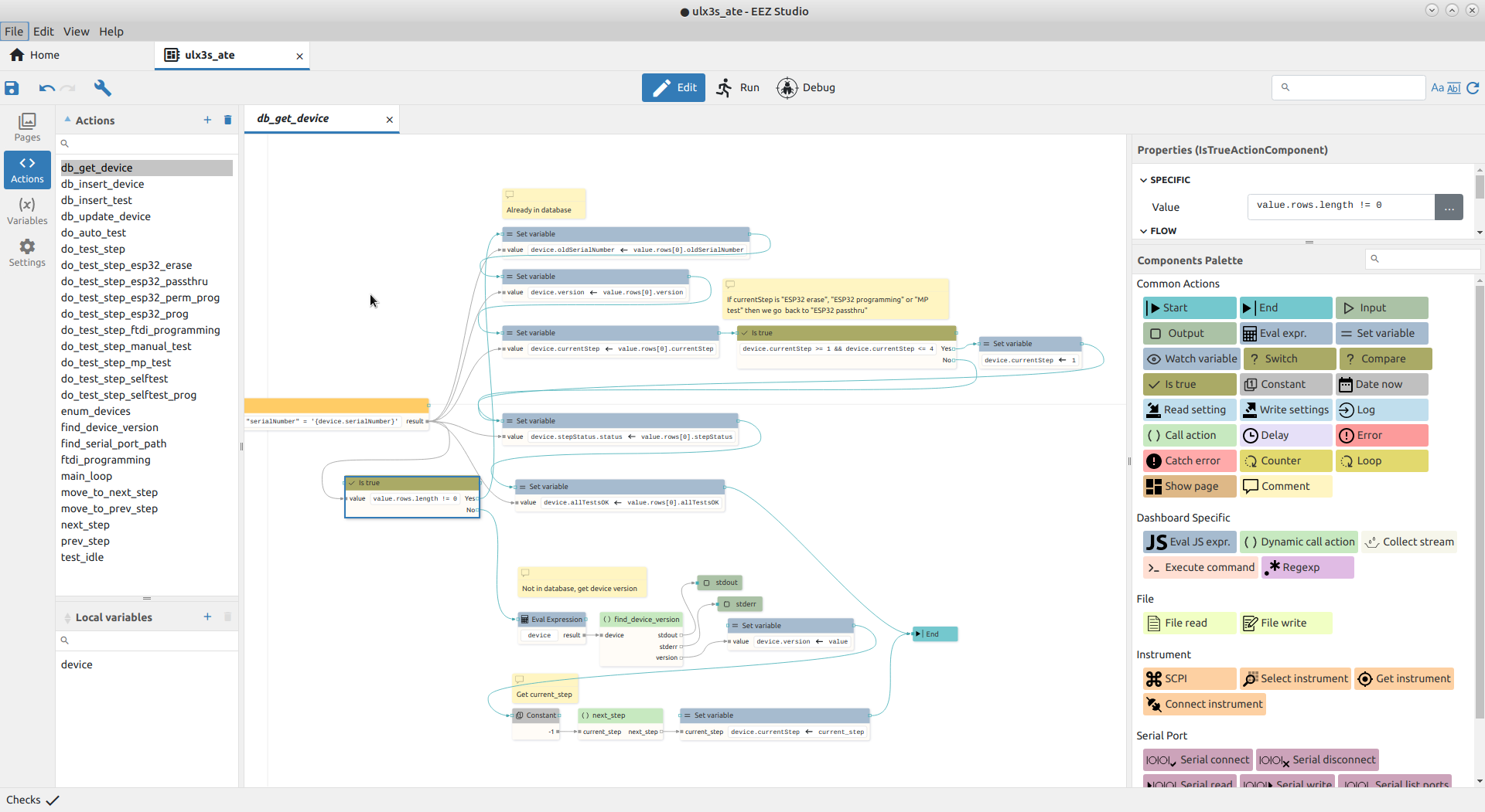 “The main advantages of using EEZ Studio is the simple way creation of an understandable GUI (i.e. dashboard) on the frontend side, and at the same time to create/debug easy to follow complete graphical flow on the backend” said Goran Mahovlić, CEO of Intergalaktik d.o.o. “By looking at a graphical representation of the flow, it is easier to get the whole picture of the test than by reading the script.”