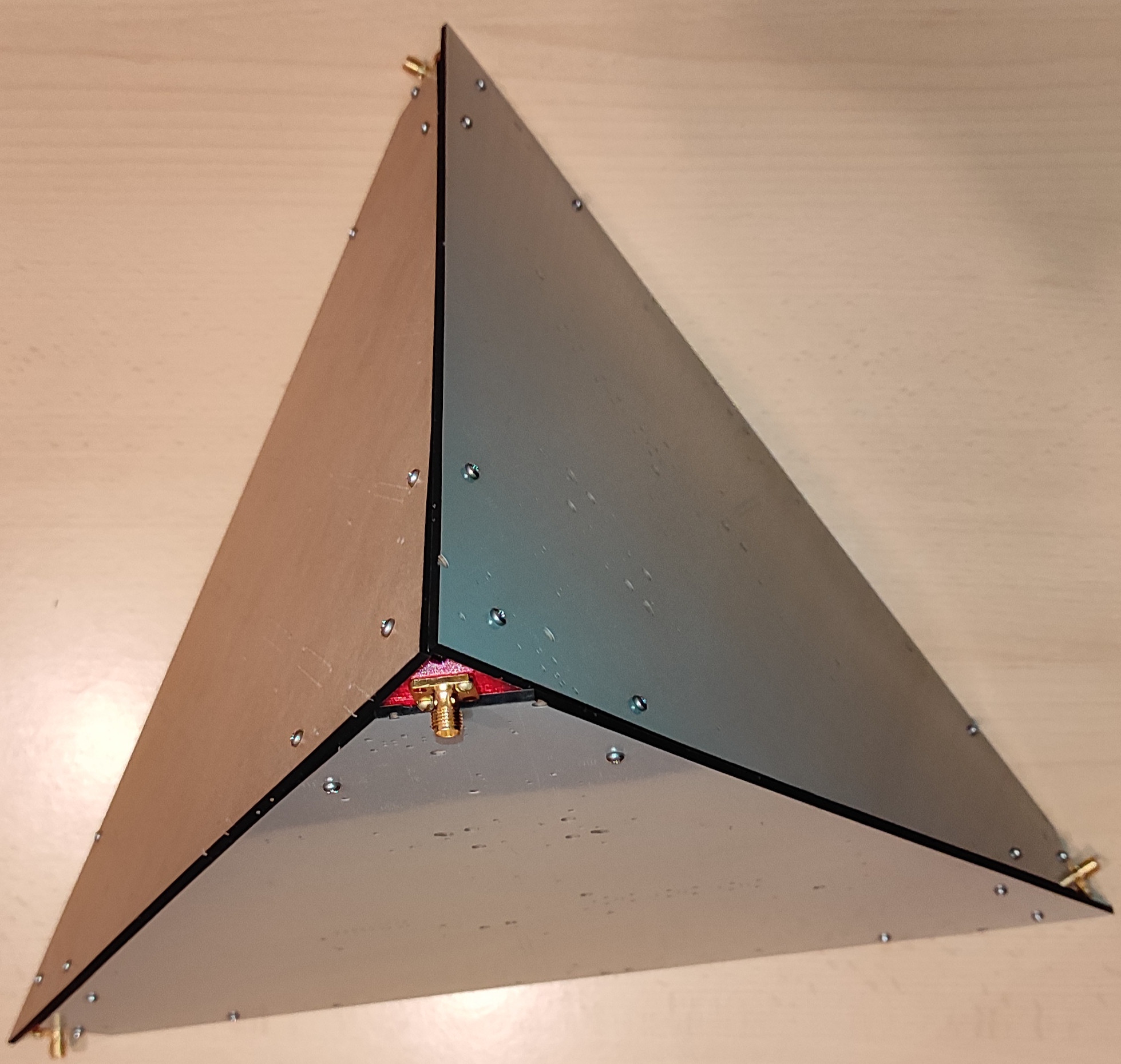 You can now start assembling from the bottom side of the pyramid and "throw" antennas on the corners, then add any side, add the top antenna, and then add the remaining side.
