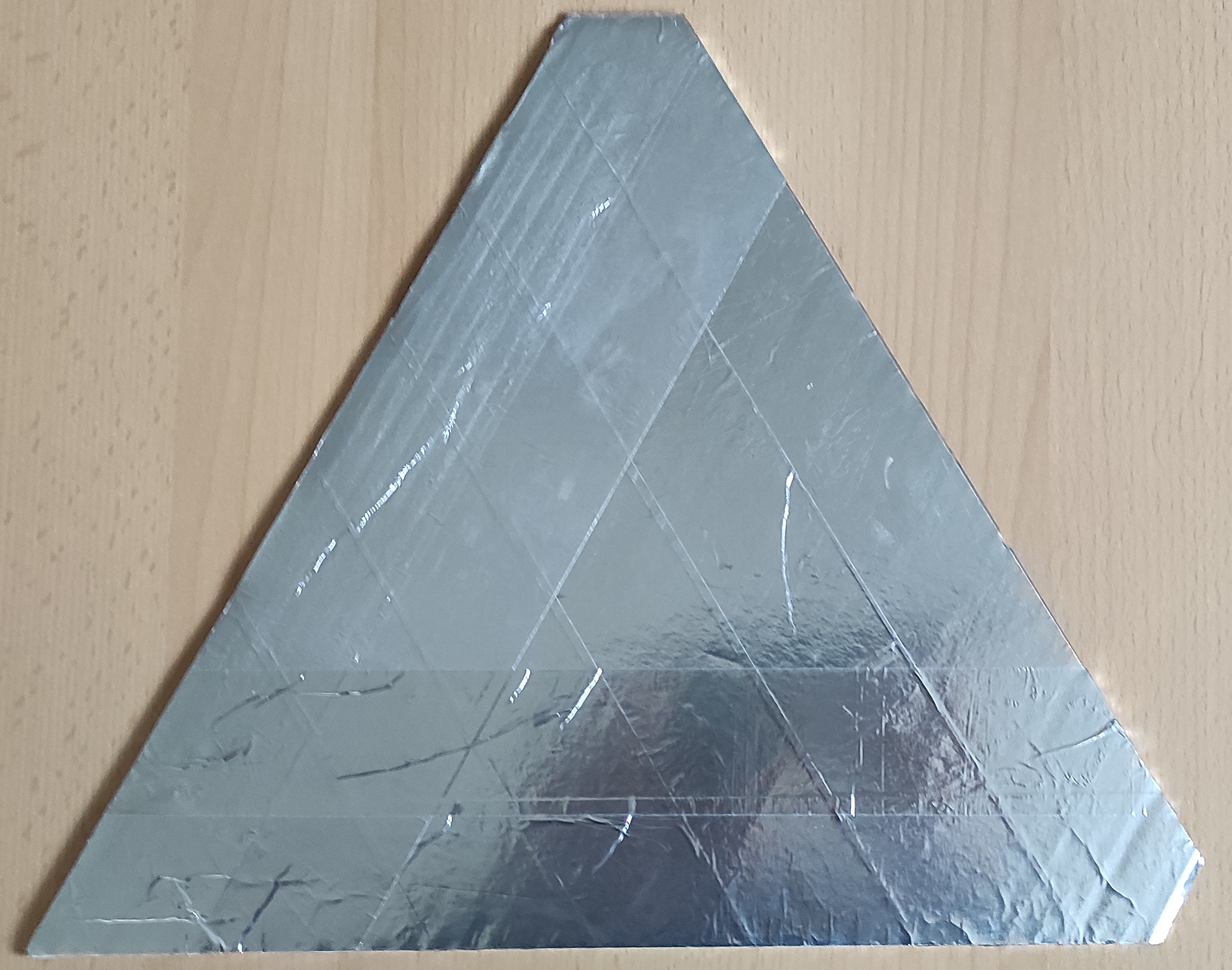 We will cut the foil in a specific way so that we only use one foil sheet per the pyramid side.